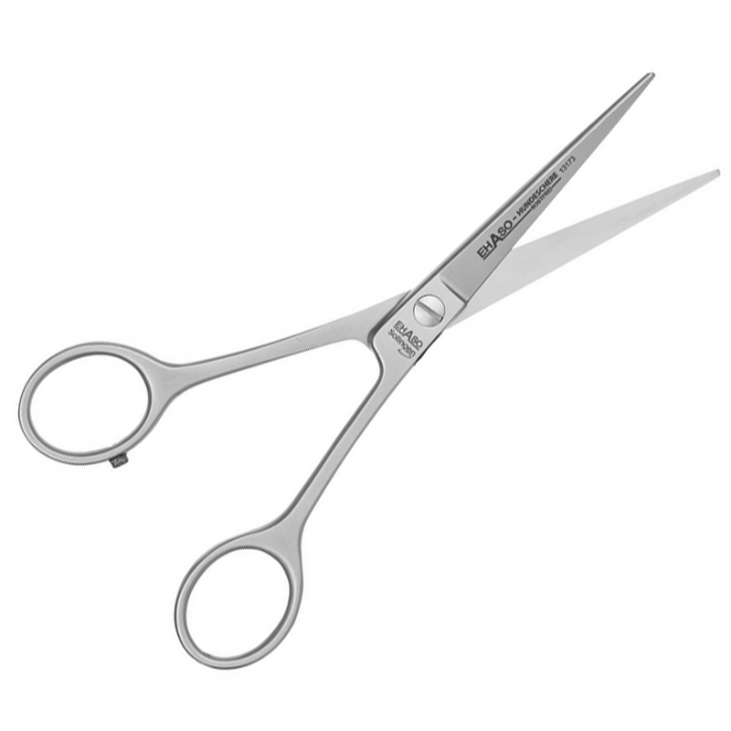 Une paire de ciseaux droit de 17 cm microdentée en acier inoxydable avec un poids de 74 g Les ciseaux EHASO sont fabriqués à la main à Solingen (Allemagne) depuis plus de 60 ans. Les ciseaux EHASO sont de haute qualité et le fil de leur lame est particulièrement tranchant, lame microdentée. Ces ciseaux ne sont pas produits industriellement mais sont fabriqués à la main par des artisans.