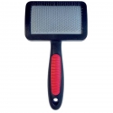 Promo!Brosse carde à picots souples inoxydables est efficace pour le toilettage du chien ou chat elle servira à retirer tous les poils morts et démêler. Munie d'un Manche ergonomique et antidérapant.