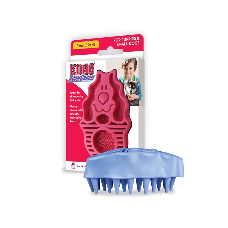 La brosse KONG ZoomGroom enlève les poils morts et stimule les capillaires et la production naturelle de graisse pour une peau et un pelage éclatants de santé. Parfaite pour éliminer les poils et utiliser avec du shampooing. Masse le chien tout en le brossant.