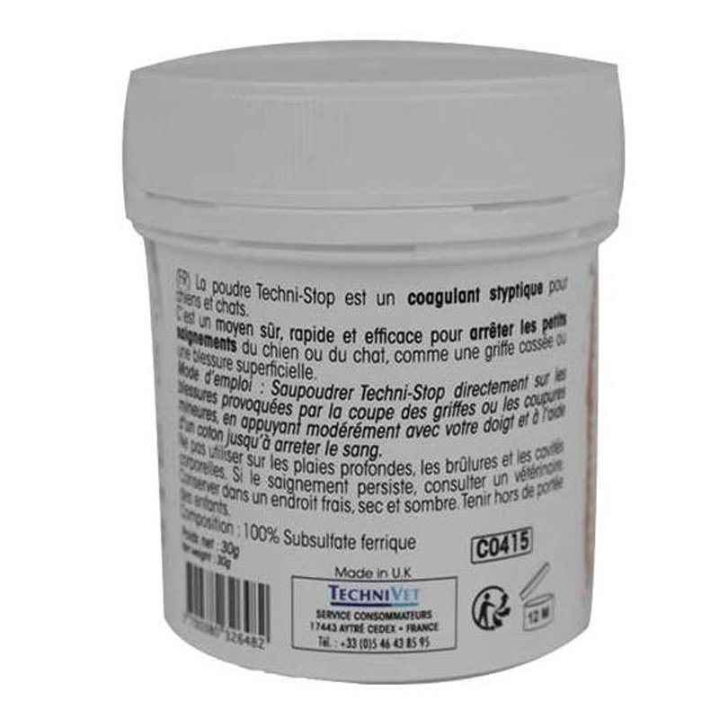 Un coagulant et un désinfectant cette poudre hémostatique utile si la griffe est coupée trop près du nerf, pour arrêter le saignement.