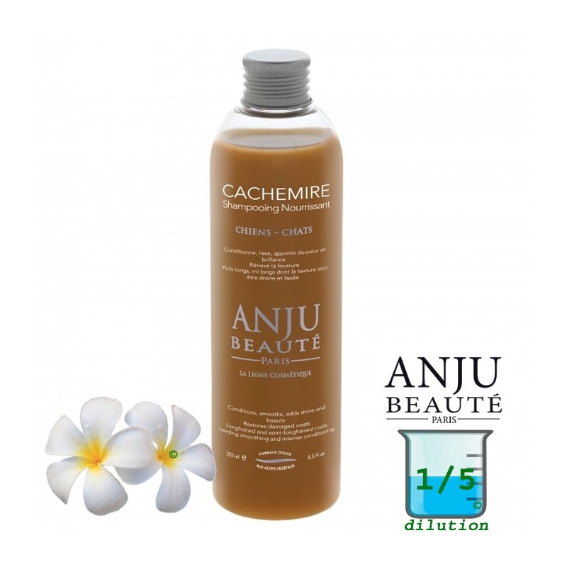 Shampoing pour chien Anju Cachemire nourrissant qui lisse, embellit les poils longs, mi-longs à texture devant être lissée, très efficace pour chiens au poil endommagé - stimule la pousse grâce aux actifs naturels d’origine. Découvrez toute la gamme Anju Beaute
