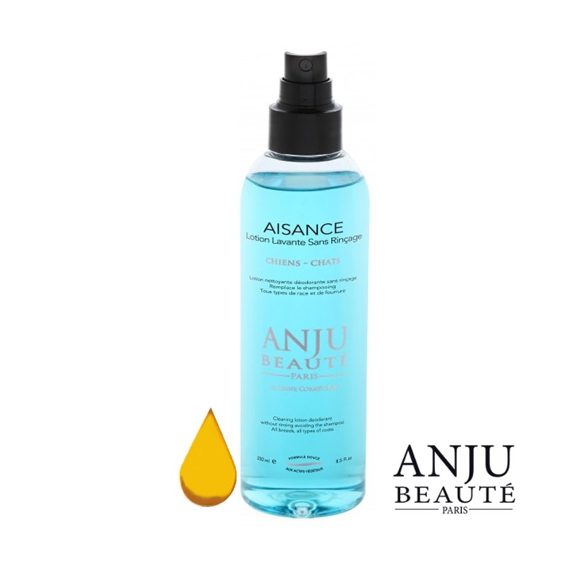 shampoing sec pour chien lotion AISANCE Anju sans rinçage nettoyante déodorante est un Shampooing sans rinçage une solution la plus efficace pour laver efficacement pour tous types de race et de pelage.