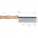 Peigne avec un manche en bois avec dents métalliques larges pour aérer et lisser le pelage pour chien ou chat : long 18cm - hauteur 2.4cm - long 8.5cm.