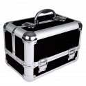 Mallette pour le rangement d'accessoire de toilettage au coins renforcés et garnitures en aluminium avec 1 compartiment inférieur et 4 tiroirs d'accordéon.