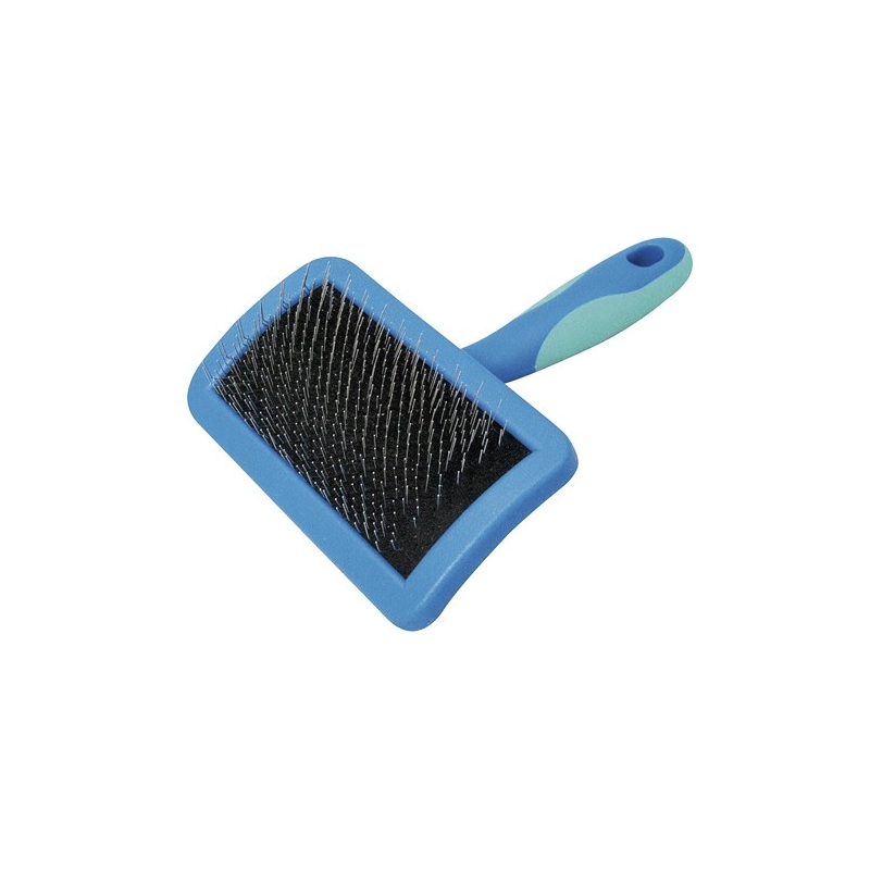 Carde à picots semi-durs inoxydables montés sur coussin d'air pour optimiser le brossage sur tout type de poils.