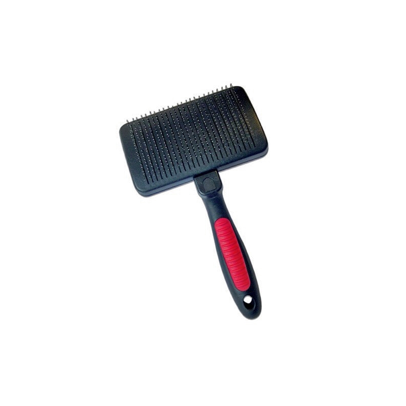 Supprime les nœuds, le poil mort et démêle. Picots souples en acier inoxydable.