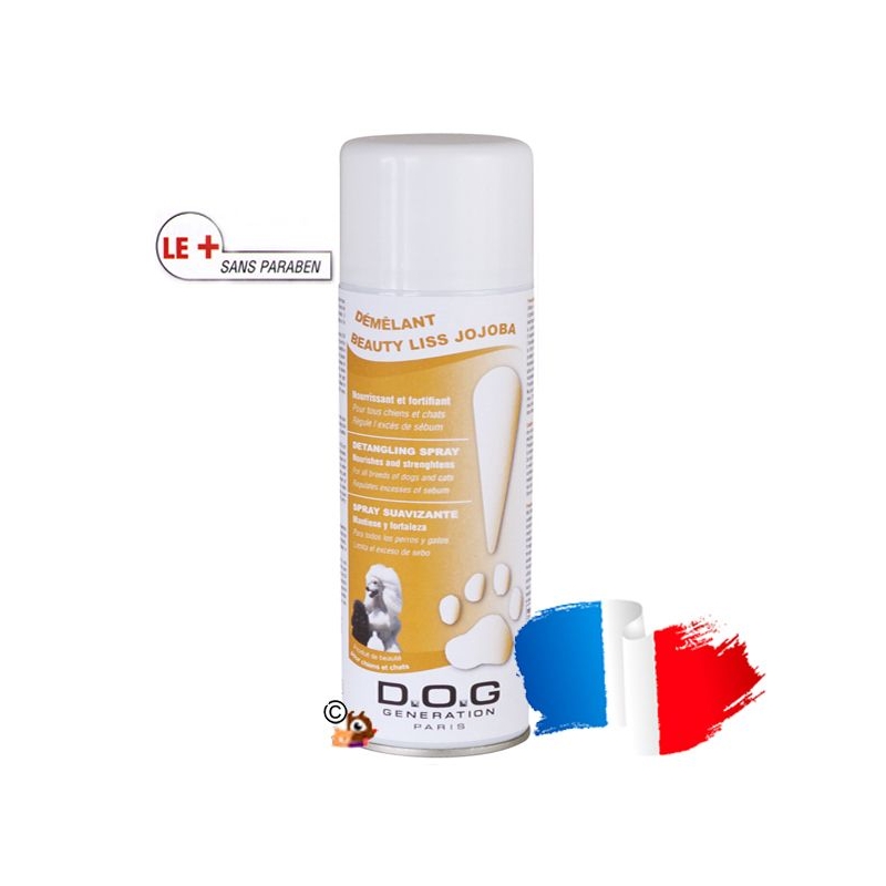 Demelant pour chien Beauty Liss Jojoba Ce puissant démêlant nourrit, assouplit et il fortifie le pelqge de tous les Chiens et Chats grâce à l'huile de jojoba qui aide à la regulation de I'excès de sebum, rendant le poil brillant et hydraté