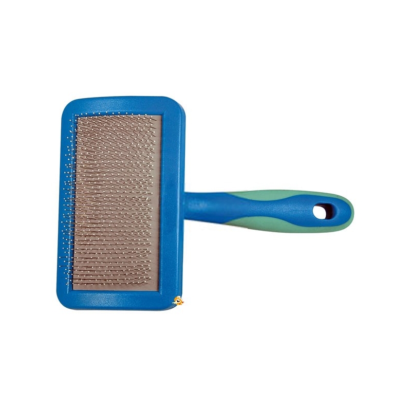 Carde avec un brossage en douceur doté de picots, munies de bouts ronds en plastique pour protéger les peaux sensibles