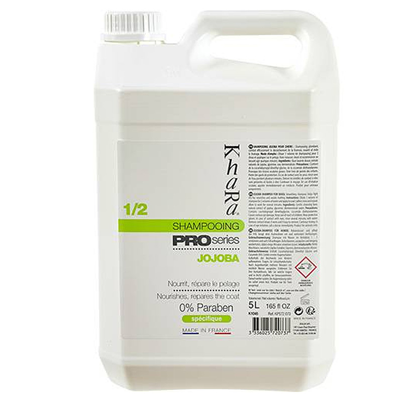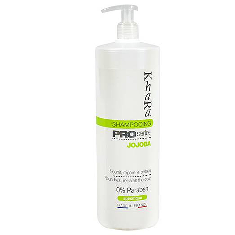 Ce shampoing chien poil longs huile de jojoba Khara évite le dessèchement du poil, nourrit et évite le feutrage. Hypoallergénique, pH neutre respectant l'épiderme du chien. C'est un shampoing Khara plombant. Voir notre gamme de shampoing à base de jojoba