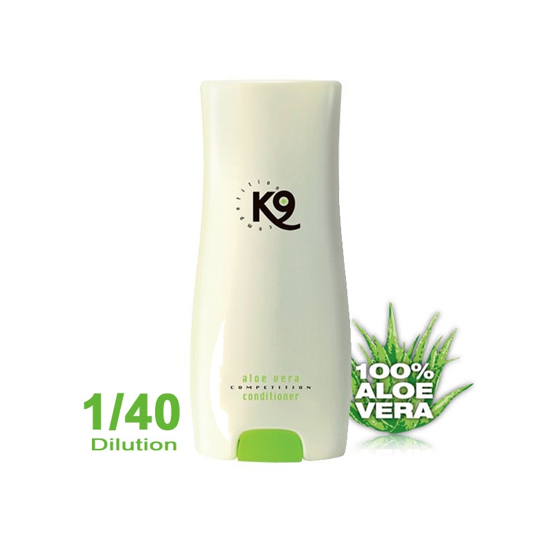 Après shampoing pour chien K9 Competition Aloe Vera Conditioneur. K9 competion. Pour un Toilettage parfait : il aide au démêlage en complément du shampoing conditionneur Pour un poil sec rincer à l'eau fraiche, pour un poil gras rincer à l'eau plus chaude - dilution jusqu'à 1 x 40