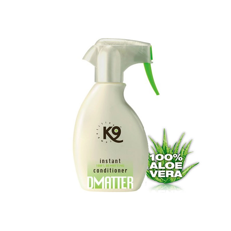 D-Matter K9 Competition démêlant pour chien Aleo Vera un spray conditionneur instantané avec un pouvoir anti-statique magique, démêlant et hydratant. Il convient à tous types de fourrures qu'il rend faciles à brosser avec une brillance incroyable.. Empêche le poil de s’emmêler et procure une excellent tenue avec un résultat durable. Idéal pour toutes les races.