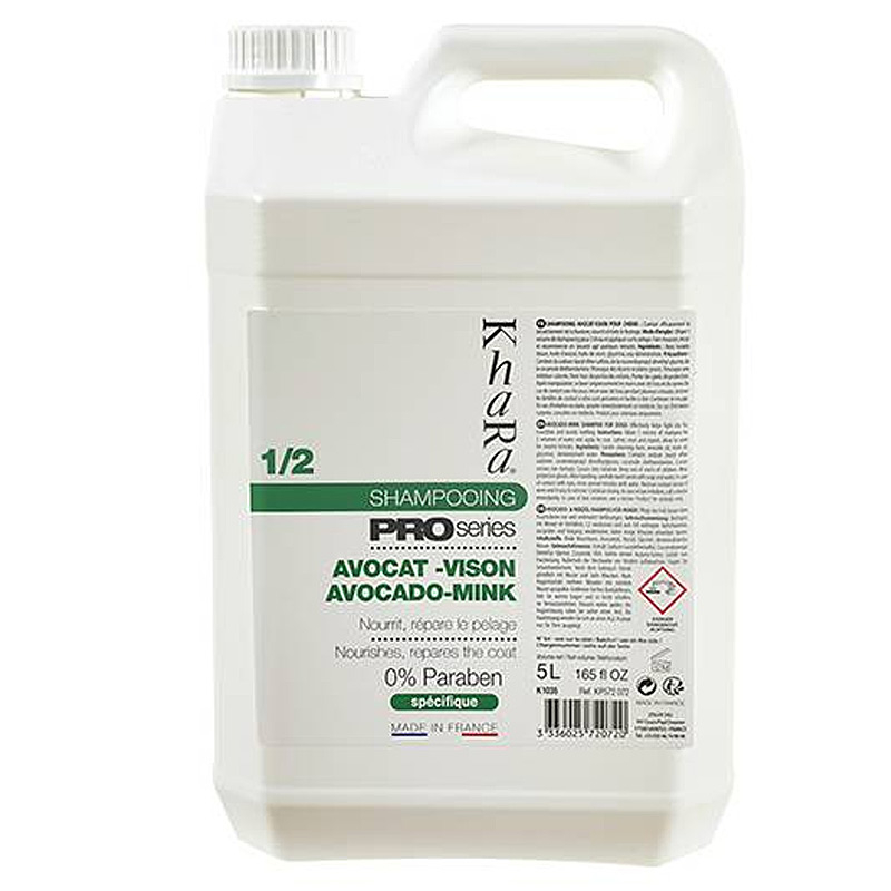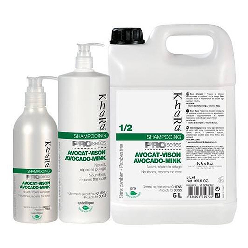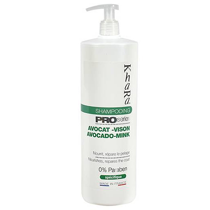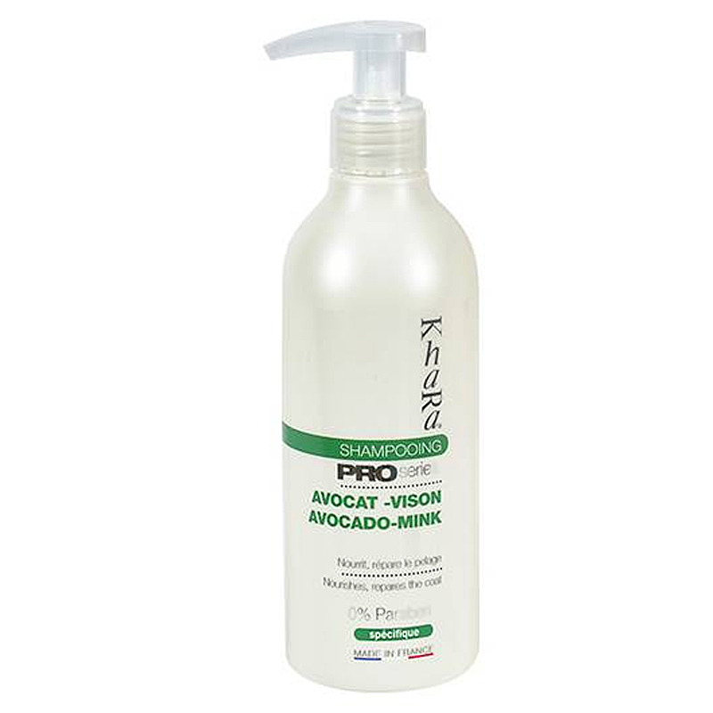 Shampoing Khara huile Avocat Vison pour nourrir le poil et éviter le feutrage de la fourrure, ce shampoing au pH neutre est recommandé aux fourrures longues. Voir la gamme