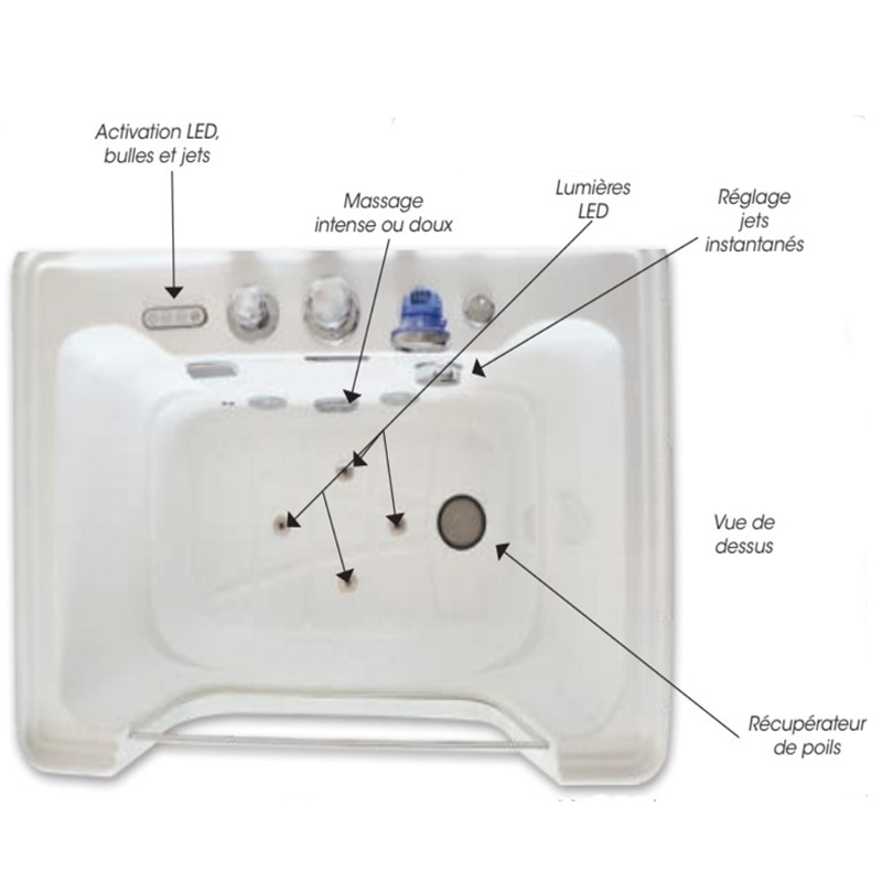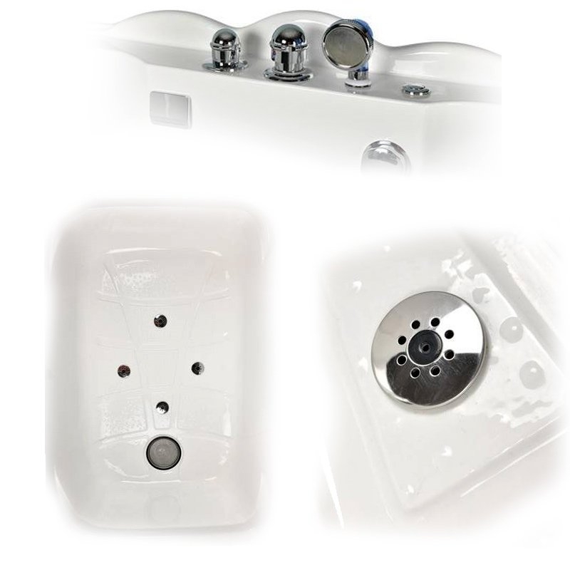 Baignoire avec panneau de commande : les fonctions peuvent être choisies facilement.