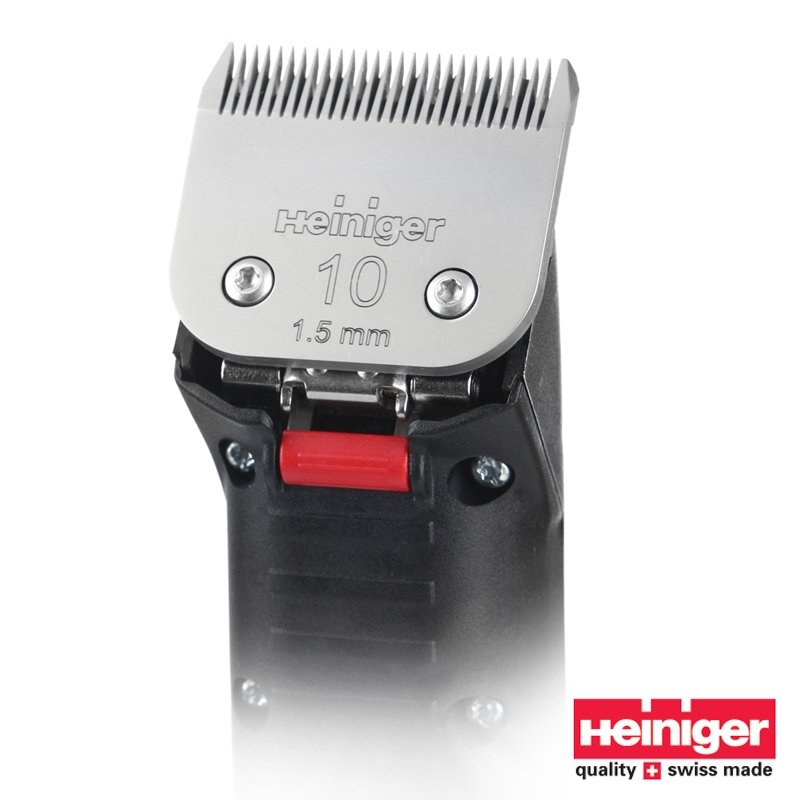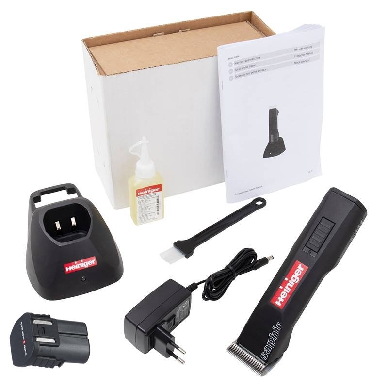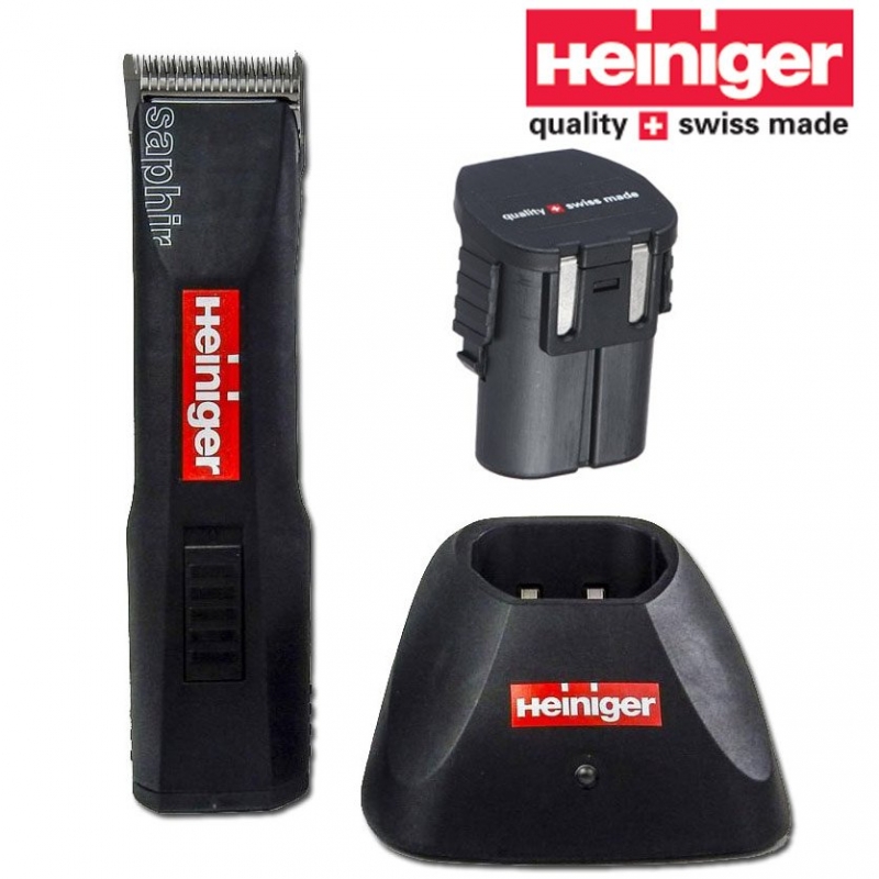 Tondeuse toilettage Heiniger Saphir Basic de 35 W silencieuse de 7.4V - la basse tension lui confère une sécurité maximum et grande puissance : les têtes compatibles sont Andis, Moser, Oster et Wahl, Snap on, Optimum.