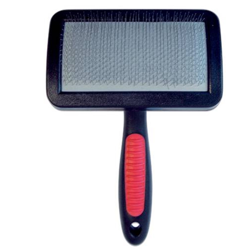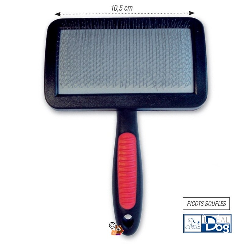 Brosse carde à picots souples, efficace pour le toilettage du chien ou chat elle servira à retirer tous les poils morts et démêler. Munie d'un manche ergonomique et antidérapant.