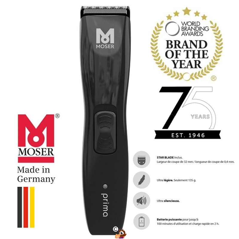 Une tondeuse très utile - petit budget idéal pour tondre les pattes, oreilles, museau et organes génitaux. La tondeuse Prima sans fil est ultra légère et silencieuse, livrée avec tête de coupe et chargeur.