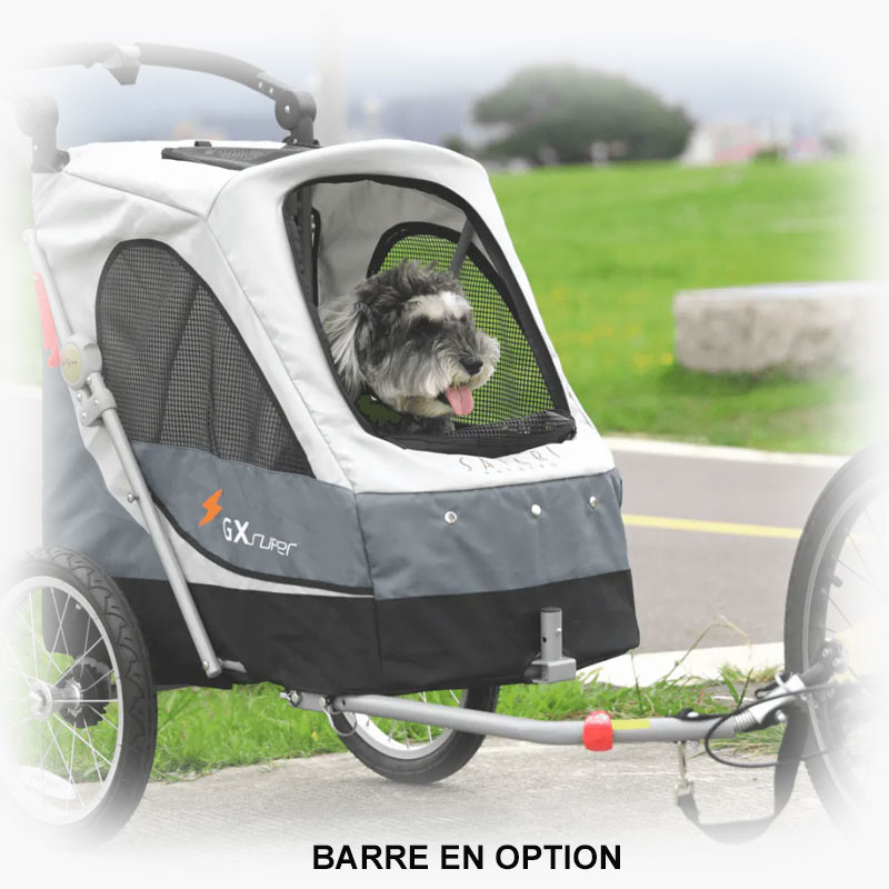 Grande poussette grand chien aventura XL Skyline pliable, compacte et maniable pour de moins de 45 kgs une poussette pour chien 3 roues assemblage rapide de freins, de nombreuses ouvertures et aérations. Il est possible de rajouter la barre de traction pour le vélo. Voir toute les poussettes.