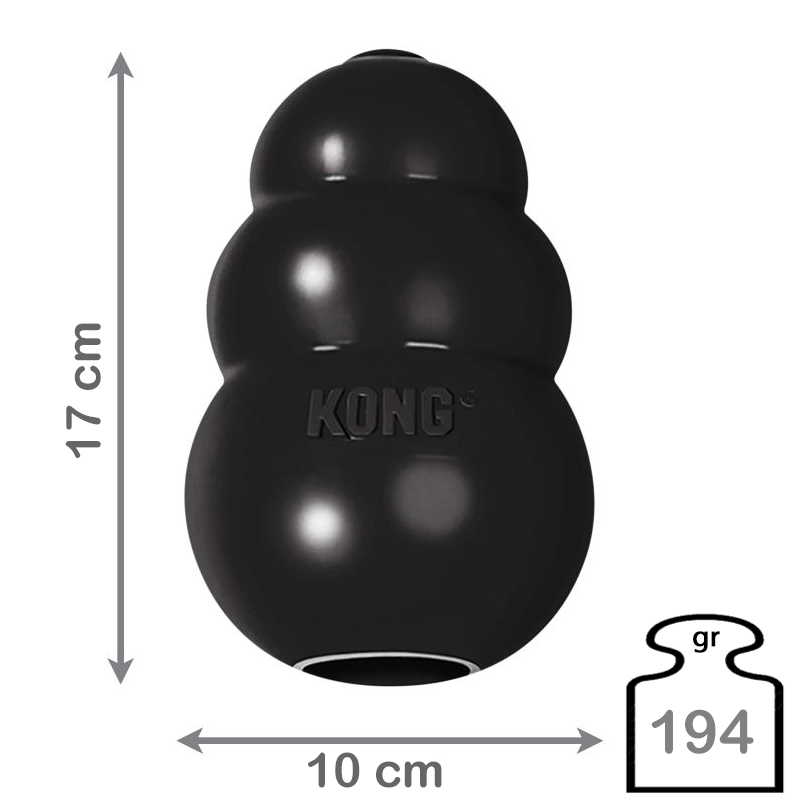 L'original: un jouet irrésistible et robuste en caoutchouc naturel. Le kong noir a été spécialement conçu pour les gros et très gros chiens, qui aiment mordre à pleines dents, sans tout casser. Unique: le kong rebondit d'une manière imprévisible. Un défi incontournable pour l'instinct joueur et chasseur de tous les chiens, en particulier quand des friandises (os à mâcher ou cracker) sont cachés à l'intérieur.