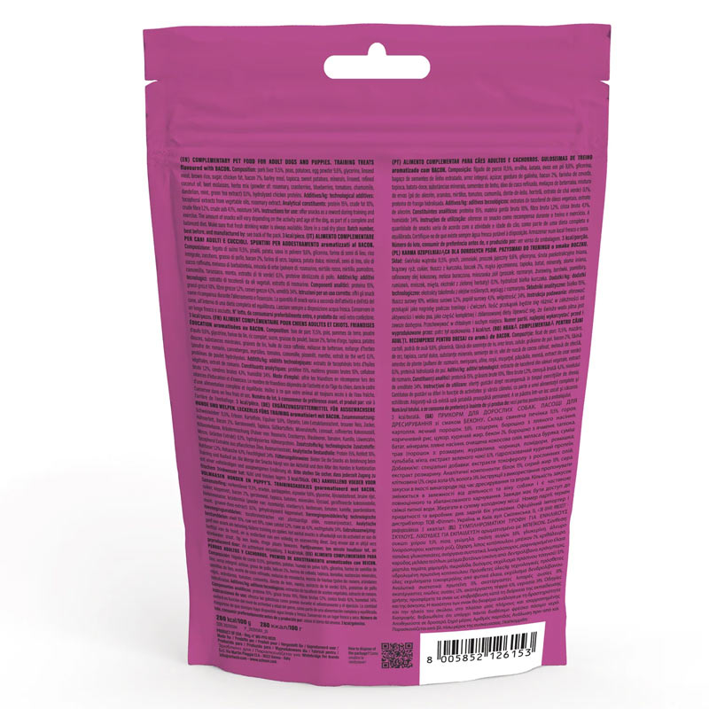 Entraînez votre chien avec ces friandises tendres et moelleuses à faible teneur en calories, aromatisées au bacon pour une explosion de goût, pour récompenser votre nouvel ami en toute tranquillité.