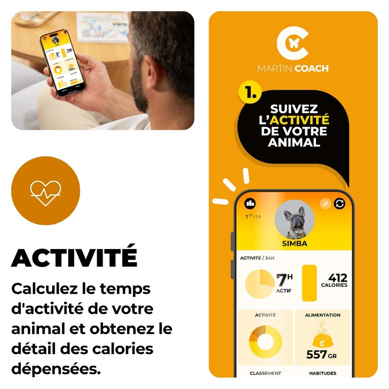 Martin Coach, le trackeur d'activités pour chien & chat sans abonnement : suivi santé, poids, rations, activité et localisation est une nouvelles aides utiles pour la santé