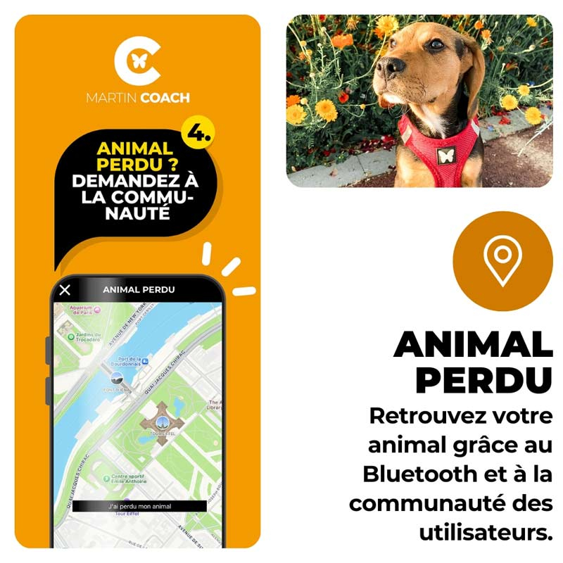Martin Coach, c’est une application + un pendentif Bluetooth pour suivre l’activité, l’alimentation et la santé de votre animal.
