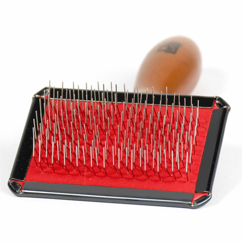Dotée de picots durs en acier inoxydable, elle permet un démêlage intensif et efficace, tout en respectant la structure du poil. Elle élimine les nœuds résistants et retire le sous-poil mort sans agresser la peau lorsqu’elle est utilisée correctement.