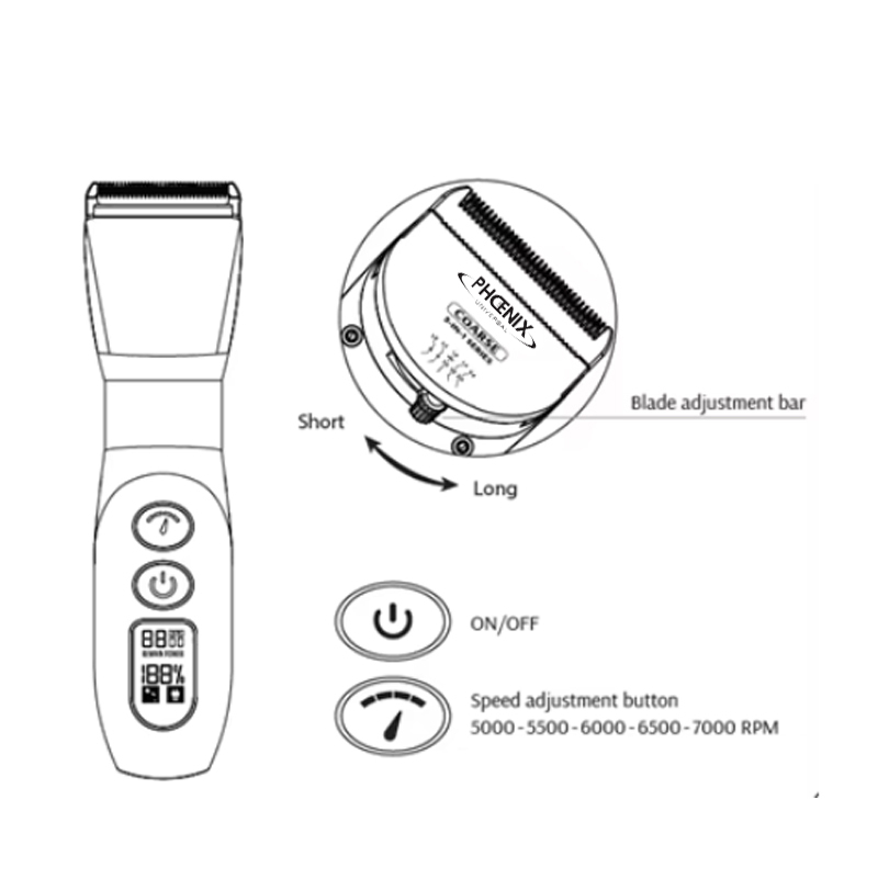 tondeuse sans fil Elite Phoenix allie performance, précision et confort pour un toilettage professionnel. Dotée de 5 vitesses réglables, d’un écran LCD et d’une autonomie de 240 minutes, elle garantit une coupe nette, rapide et silencieuse. Idéale pour les finitions pattes et tête.