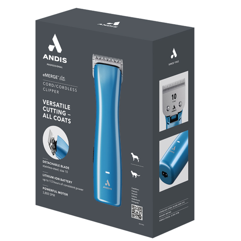 Découvrez la tondeuse Andis EMERGE LI LITE : légère, puissante et sans fil. Idéale pour un toilettage précis et professionnel sur tous types de pelage.