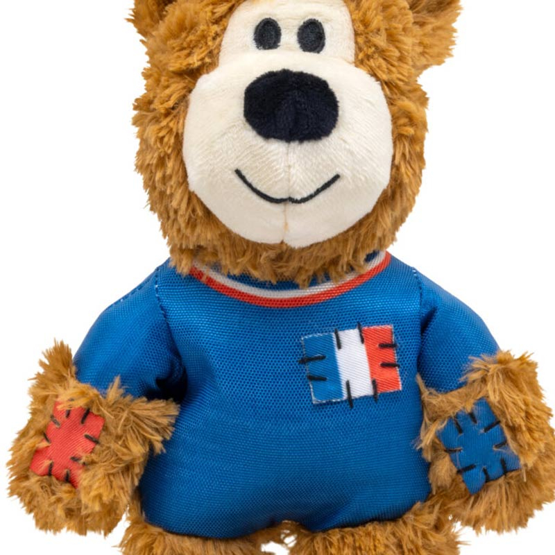 Le KONG Wild Knots Sport Bear M combine l’aspect réconfortant d’une peluche avec une solidité exceptionnelle grâce à son squelette interne en corde.